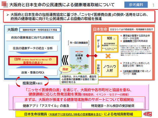 「ニッセイ医療費白書」のご提供を契機として、日本生命保険相互会社と大阪府は、公民連携による健康増進の取組みを一層強化していきます。