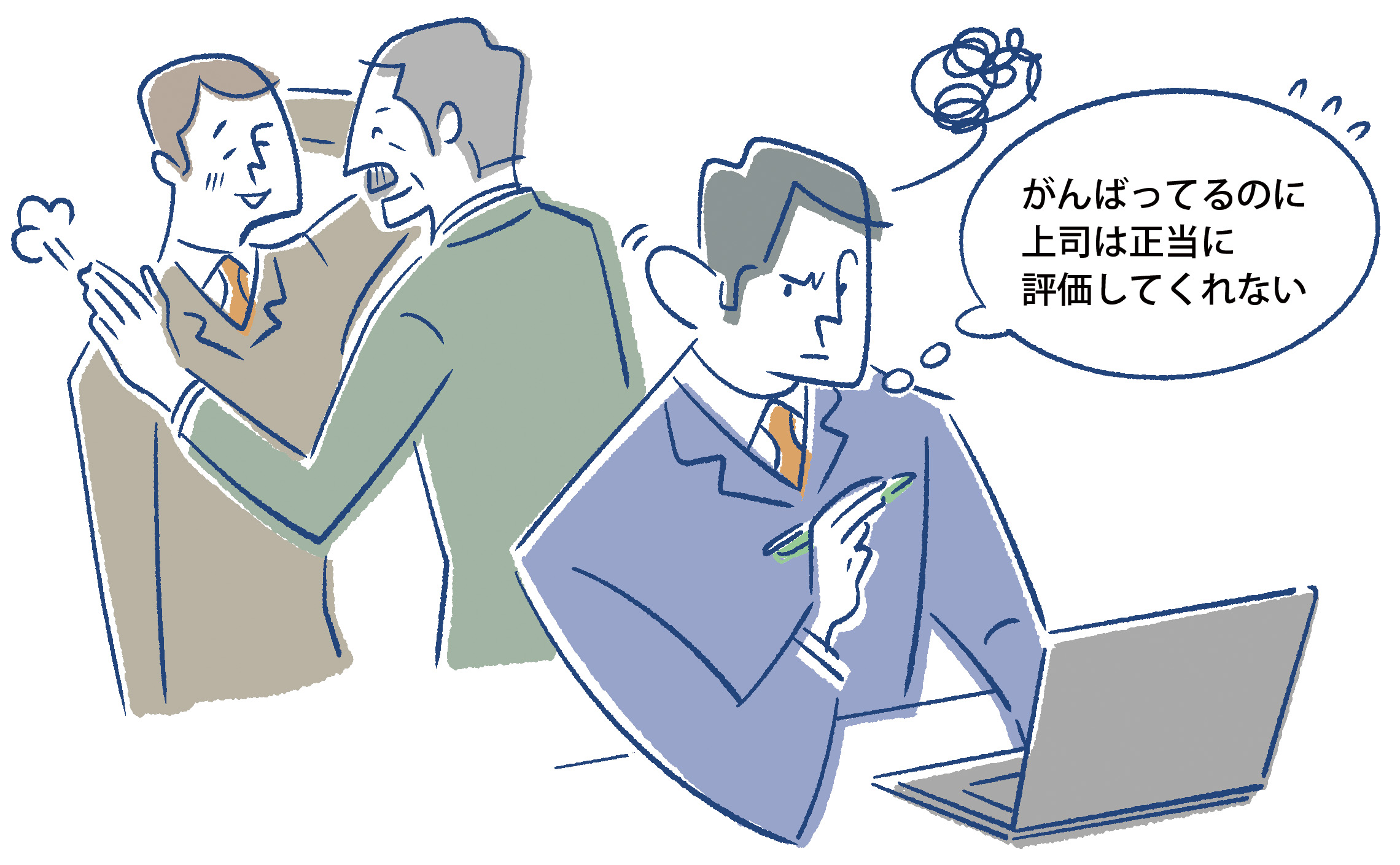 Tさんは、朝早くきて仕事に取りかかり、会議では積極的に意見を言ったり、業務スピードを上げたり、やりたくない仕事も引き受けたり…と人一倍、努力しています。しかし、評価されるのはいつもほかの人で、自分が正当に評価されていないと感じています。 そのため、上司に対する不満がたまり、仕事のモチベーションは下がる一方です。これ以上、どうがんばればいいのかわからず、途方に暮れています。